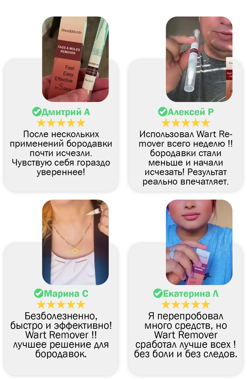 натуральные компоненты, которые устраняют бородавки, прыщи и тёмные пятна.